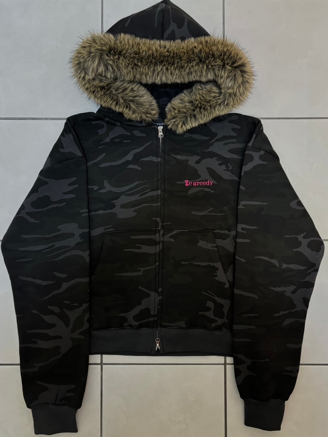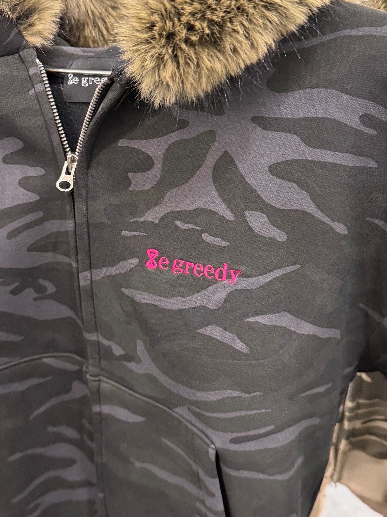 camo fur jacket black